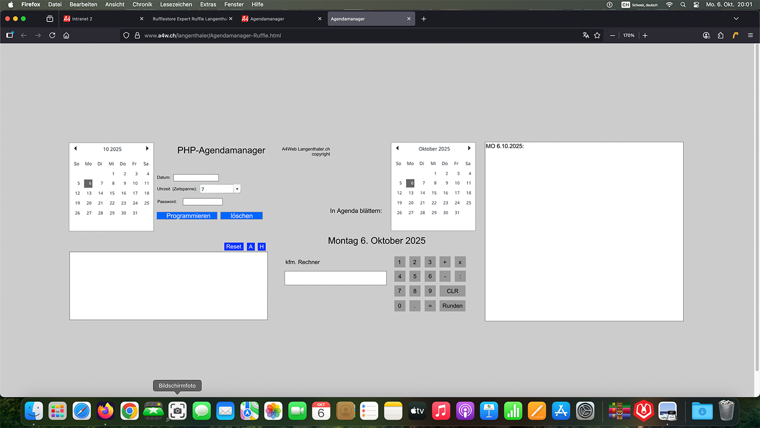 Links unser PHP-Redaktionssystem: Ich gestalte Ihnen so eine Webseite mit unserem PHP-Content-Management-System, wie Sie es hier sehen. Die neue Webseite, die wir Ihnen gestalten, ist mit Hilfe solcher beiden identischen Tools verbunden, die wir für Sie installieren. Wir supporten dann Ihre neue Webseite. Sie können uns Texte senden und wir bereiten die Internetseiten auf. Sie könnten dies natürlich mit etwas Hilfe anfangs selbst auch erledigen mit der Zeit. Unten sehen Sie den PHP-Redaktionsmanager, der für mobile Geräte am geeignetsten ist...mehr... Musterseite: www.a4w.ch