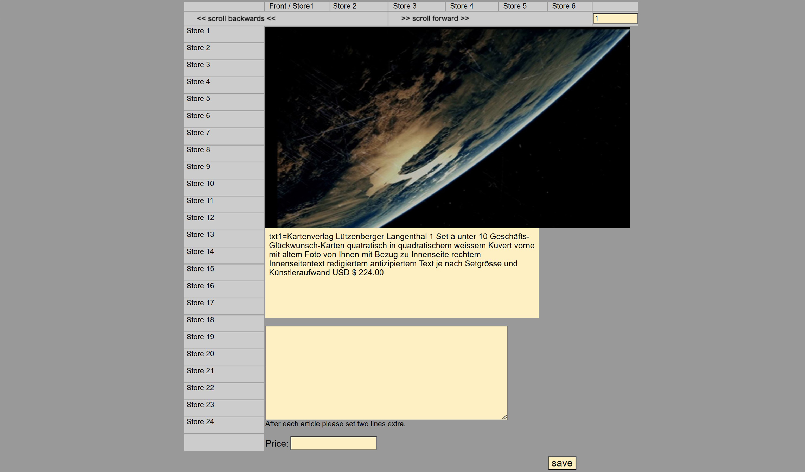 Above: automatic formatting all articles, alle prices 6000x - let this php run in folder «Bilder» - then alle articles come after waiting 2 minutes automatically. Below: formatting for each menue (overwrite in script above for Menue Kochen)