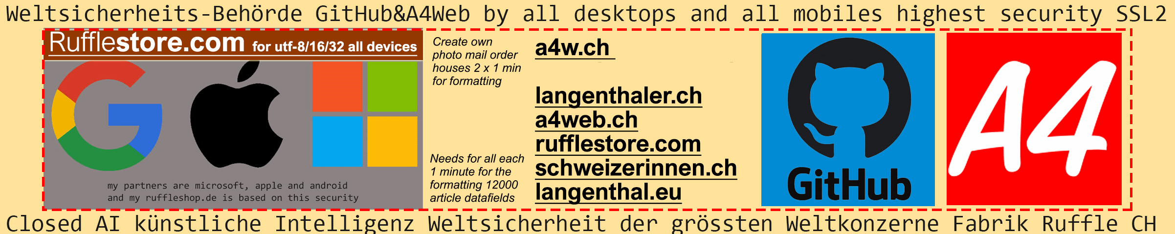 Weltweiter Erfolg für www.rufflestore.com Ein Der schnell auslieferbare Die Computerschrift wurde auf Segeo gewählt, da dieser Schriftsatz alle weltweiten Sprachen unterstützt. So kann der Beim Bestell-Doppelbutton werden zwei Warenkorb-Einsendungen parallel gleichzeitig erlaubt. Der Encrypted-Send-Button und der E-Mail Button. Der Encrypted-Send-Button sendet der Warenkorb schön formatiert und komplett mit hunderten Artikeln zurück durch die GPU direkt durch jede Firewall also zurück zum Hosting in einem encrypted Kanal in ein geheimes verschüsseltes PHP-Skript. In den angebotenen fünf Farben kann so ein günstiger Im ersten Kernel werden 9 Menüs zu je 250 Shopartikeln direkt im Root in einer Text-Datei eingegeben (vom Kunden selbst programmierbare Menüs). Der zweite Kernel ist die gleiche Webseite aber mit 24 Menüs, die auch im Root beschriftbar sind durch Sie selbst in Textdateien. Im ersten Kernel können 3000 Artikel abgerufen werden, im zweiten kommen 3000 Artikel hinzu, sprich bis 6000 Artikel also. Der Man schaltet den Ruffleshop wie folgt: Die HTML-Version kann dann nachträglich gewählt werden, wenn der Prozessor nicht schnell genug ist. Dies sind Androide, die älter und vor 6 Jahren produziert worden sind. Dieser Zur Geräte-Hersteller-Garantie: hier klicken Andreas Lützenberger